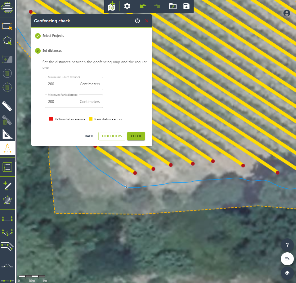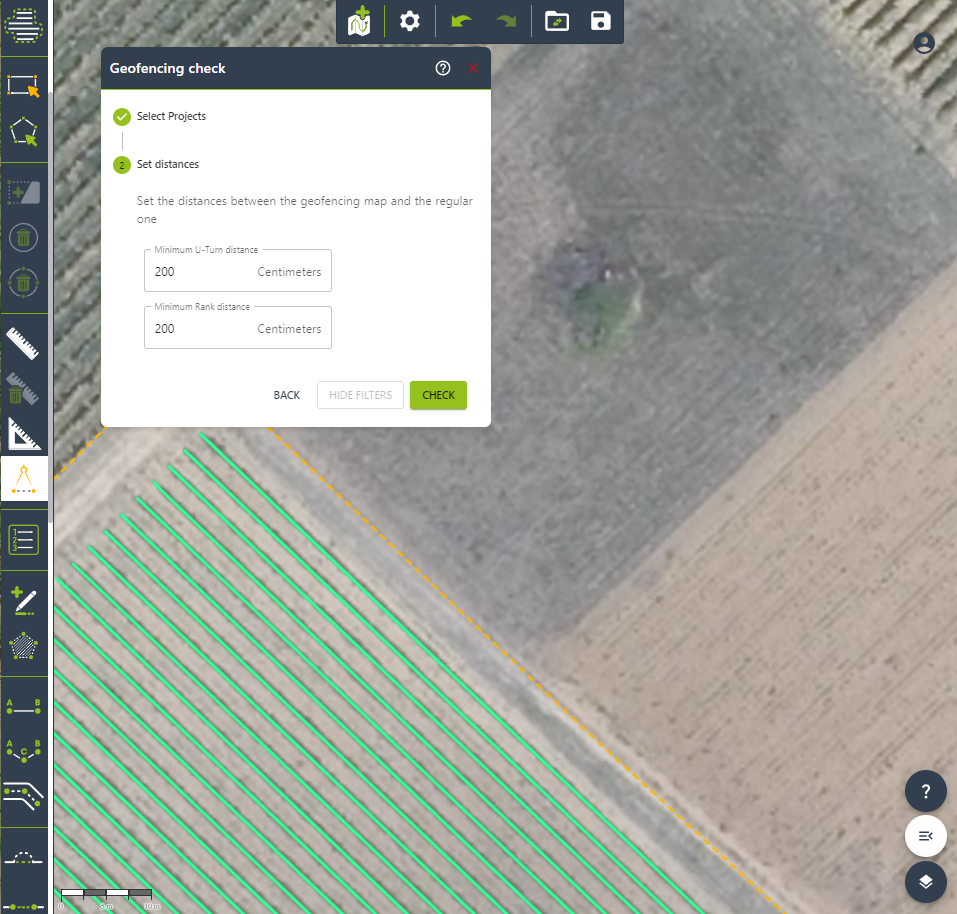 - The minimum U-turn distance to check that row ends are at a distance from the geofence greater than or equal to the value