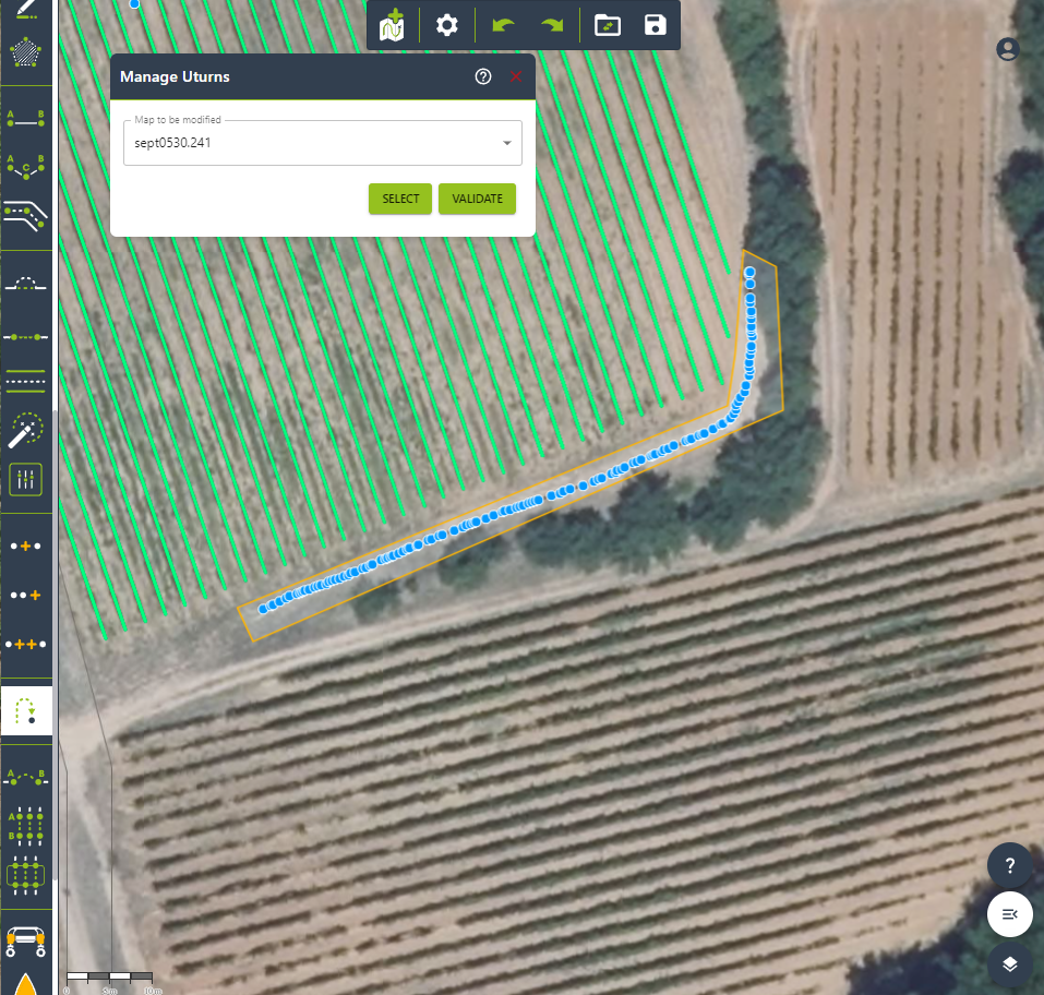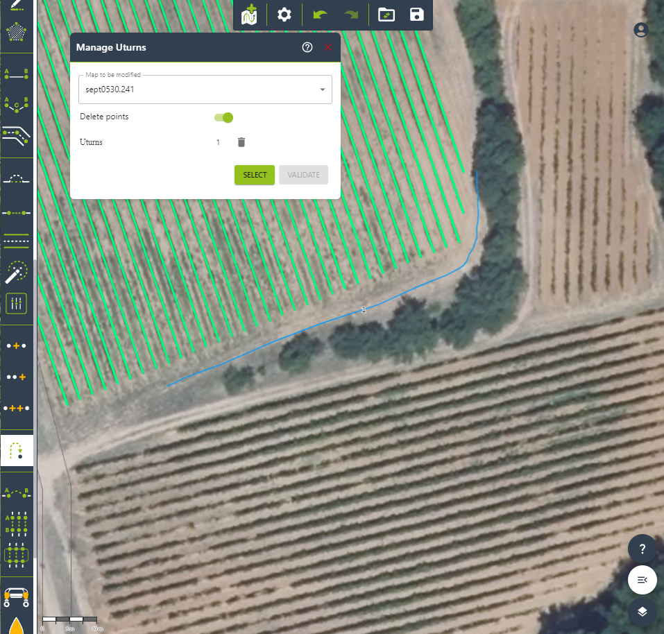 - You can select one (or more) U-turn paths by clicking on SELECT and then add them to the map by clicking on VALIDATE.