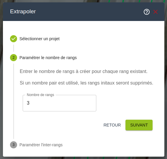 - Si le nombre de rangs est pair, les rangs seront extrapolés autour de la trace originelle (d’une demi-distance de chaque côté de la trace donc)