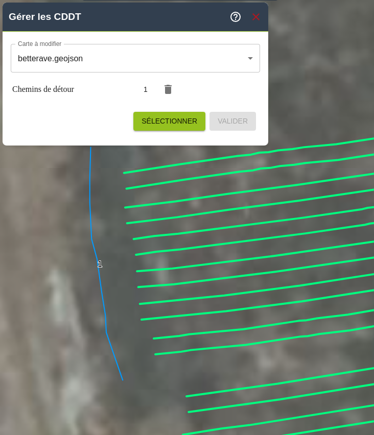 - Il est possible d’en sélectionner un (ou plusieurs) CDDT en cliquant sur SÉLECTIONNER puis de l’ajouter à la carte en cliquant sur VALIDER